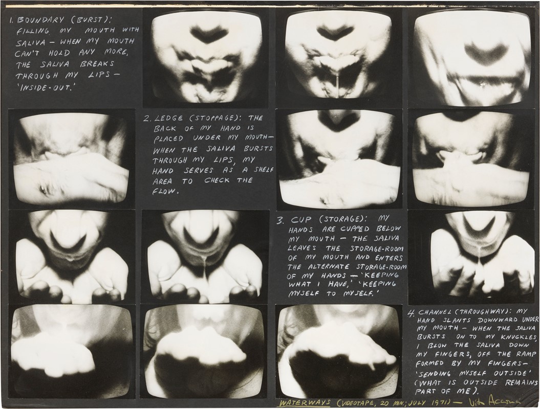 1971 Titolo, data e firma in basso a destra: Waterways (Videotape, 20 min.; July 1971) - Vito Acconci.