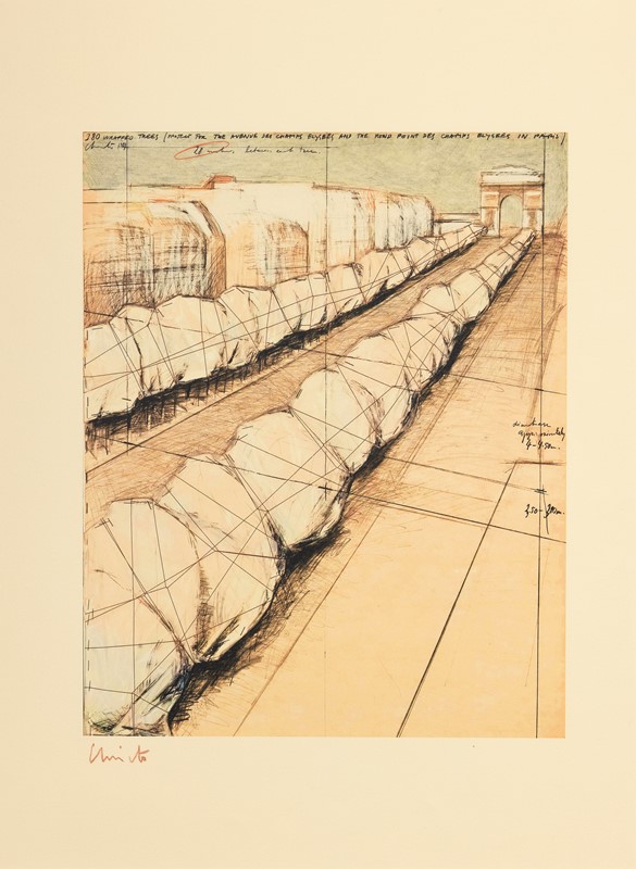 2003 Firma in basso a sinistra: Christo, firma e data in lastra in alto a sinistra: Christo 1969, scritta a stampa in basso: Christo: Wrapped Trees, Project for Avenue Des Champs-Elysées and the Rond Point in Paris, Collage 1969, © Christo; published and distributed in 2003 by MACBA, Museo de Arte Contemporáneo de Barcelona.