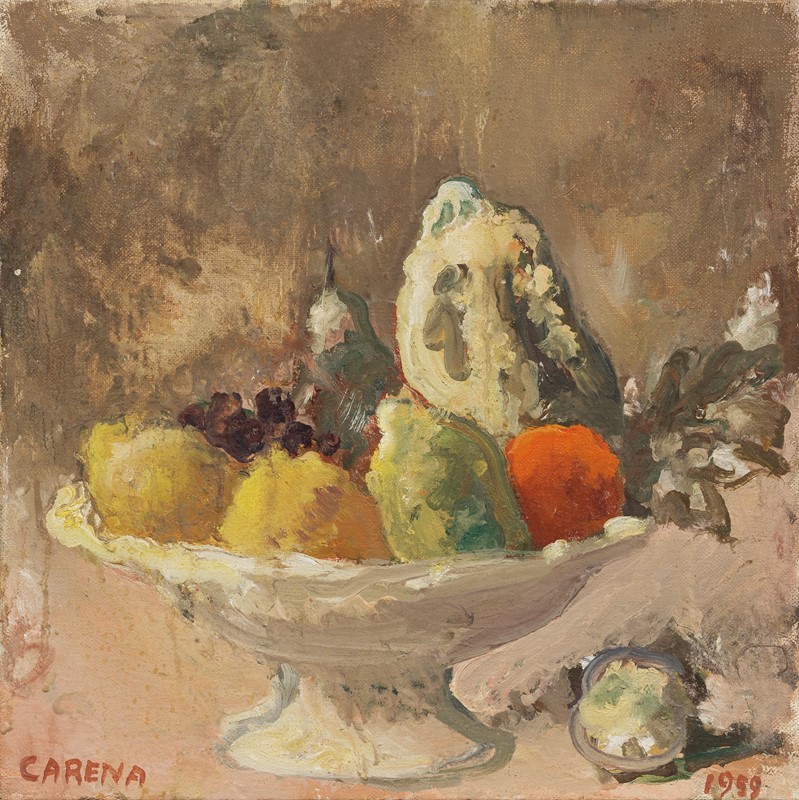 Olio su tela, cm. 40x40 1959 Firma in basso a sinistra: Carena, data in basso a destra: 1959. Al verso sul telaio: etichetta Felice Carena / dalle Collezioni Veneziane / Ca' Vendramin Calergi / 13 ottobre - 24 novembre 1985.