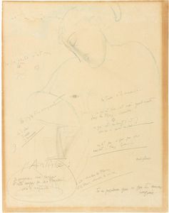 China e tecnica mista su carta applicata su cartone, cm. 36,8x28,6 1915 Firma in alto a destra: Modigliani. Al [..]