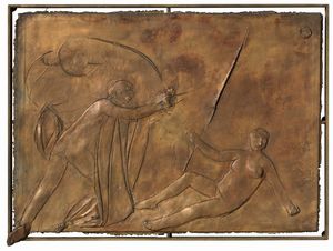 Scultura in bronzo, variante di tre, cm. 58,4x77,7 1988 Firma a punzone in alto a destra: Manzù.