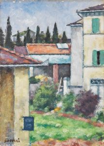 Olio su cartone telato, cm. 32,5x42,5 1946 Firma e data in basso a destra: O. Rosai / 46; firma, data e luogo [..]