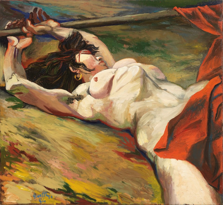 Olio su tela, cm. 110x119,5 1954 Firma e data in basso a sinistra: Guttuso / 54; titolo, data, firma, luogo e scritta al verso sulla tela: Eroina / 1954 / Renato Guttuso / Roma / 15 / Peppa 'a cannonera.