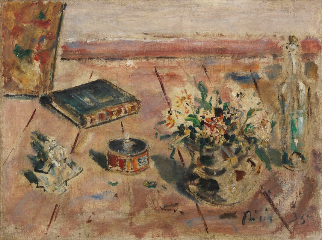 Olio su tela, cm. 65x85 1935 Firma e data in basso a destra: Pisis 35. Al verso sul telaio: etichetta Città di Acqui Terme / 50 Opere di Filippo de Pisis / Palazzo Liceo Saracco 5 agosto 10 settembre 1978: etichetta Comune di Acqui Terme / Filippo de Pisis / La Poesia nei Fiori e nelle Cose / Palazzo Liceo Saracco 16 luglio 10 settembre 2000, con n. 25; sulla tela e sul telaio: due timbri Galleria del Milione, Milano, con n. 7163; sulla cornice: etichetta Fondazione Cassa di Risparmio di Cuneo / Filippo de Pisis: fiori collezionati, fiori dipinti / Cuneo, Spazio Incontri Cassa di Risparmio 1855 / 28 ottobre - 9 dicembre 2012: etichetta Filippo de Pisis / Il Marchesino pittore e il suo tempo / Palazzo Salmatoris - Cherasco / 10 ottobre 2009 - 10 gennaio 2010.