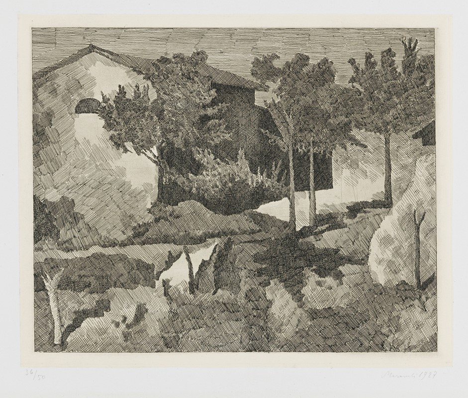 1927 Firma e data a matita sul margine in basso a destra: Morandi 1927, tiratura in basso a sinistra: 36/50, in basso a sinistra timbro a secco Eredità Morandi 1996.