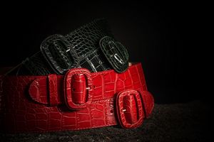 STUDIO PELLE PELLETTERIA - Scandicci (Firenze) Cintura in coccodrillo lucido rosso con doppia fibbia, cm 80, [..]