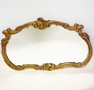 DA DISPOSIZIONE EREDITARIA Specchiera ovoidale sagomata in stile rocaille in legno dorato e intagliato, h cm [..]