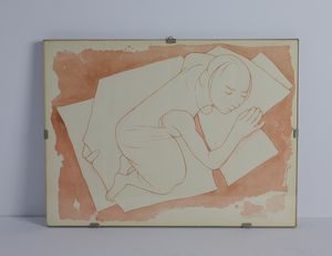 DA DISPOSIZIONE EREDITARIA Felice Casorati (1883-1963), figura accovacciata, acquerello su carta, cm.35x47, [..]