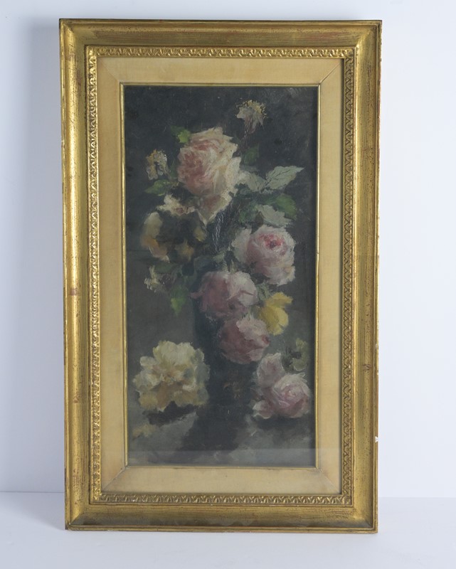 A.Mylius, roses, oil on canvas, 48x24 cm, within a gilded wood frame.