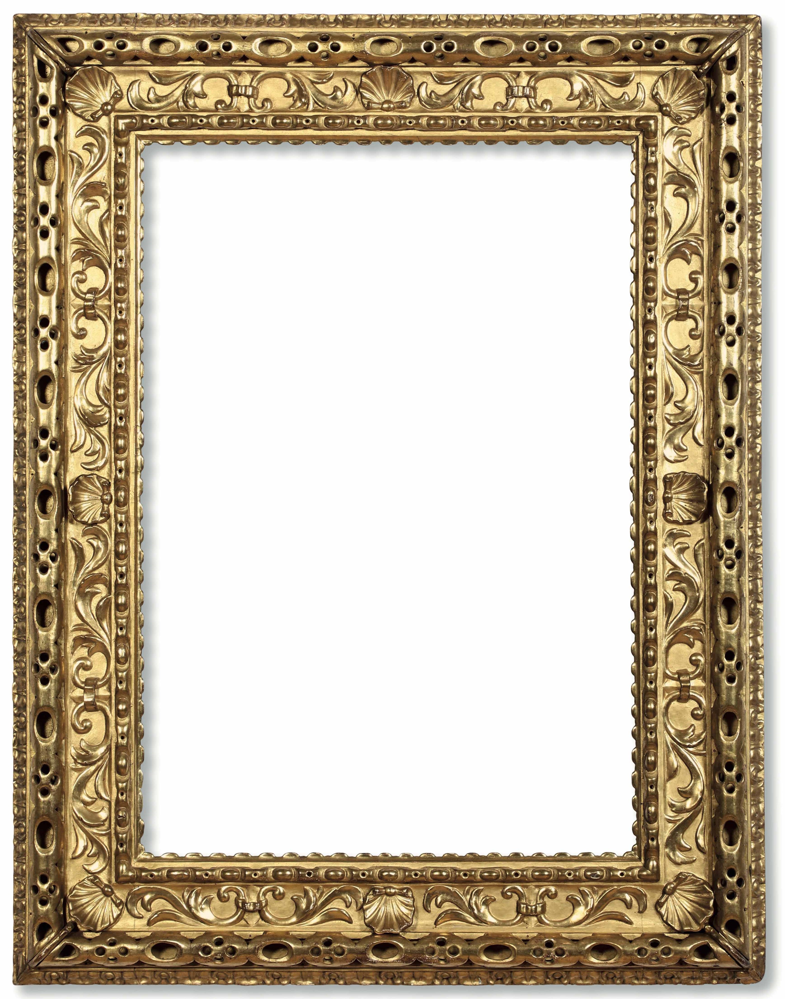 Cornice a cassetta dorata a fascia riccamente intagliata a motivi floreali. Toscana [..]