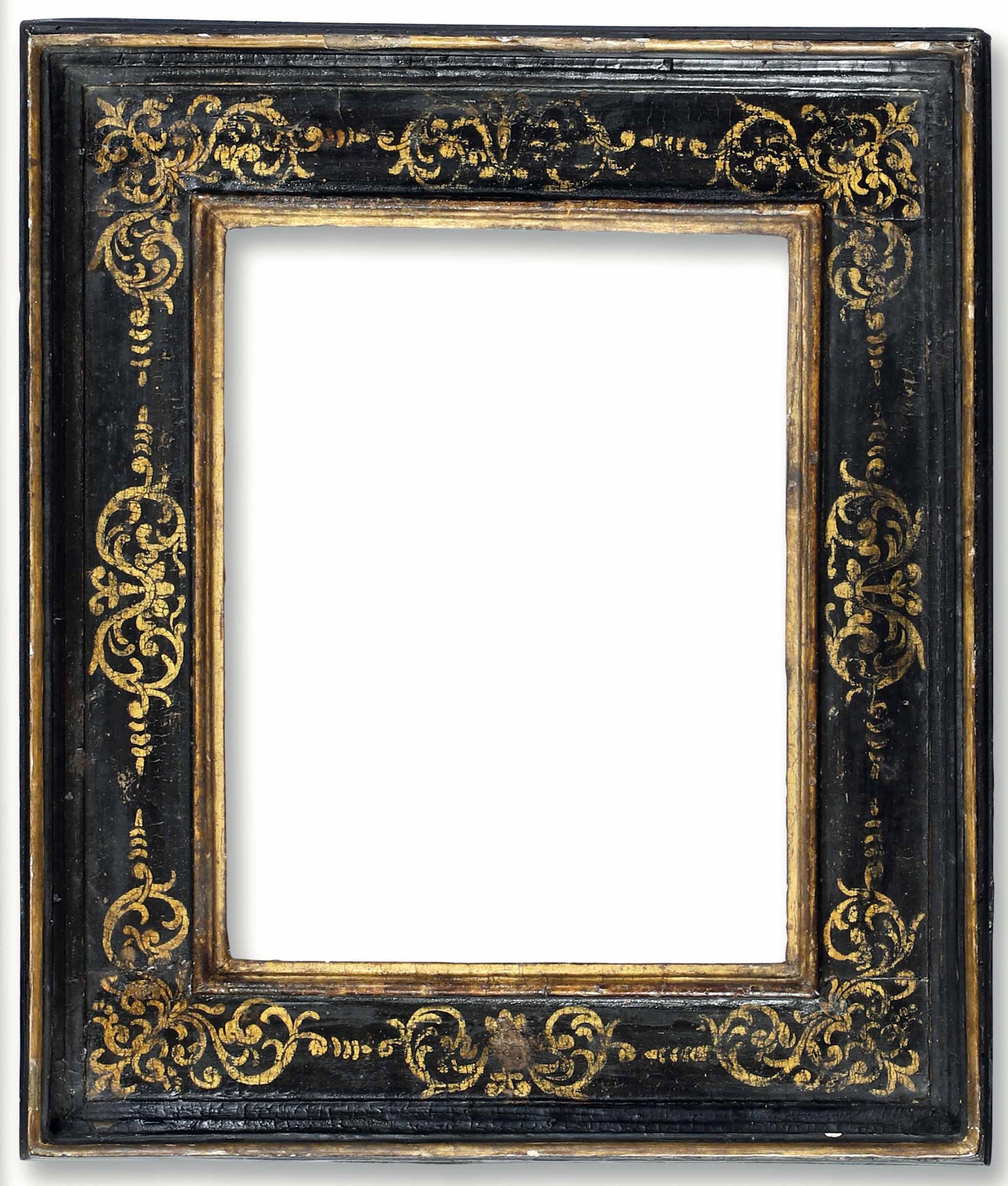 Cornice a cassetta in legno ebanizzato con decori dorati. Italia centrale XVII s [..]