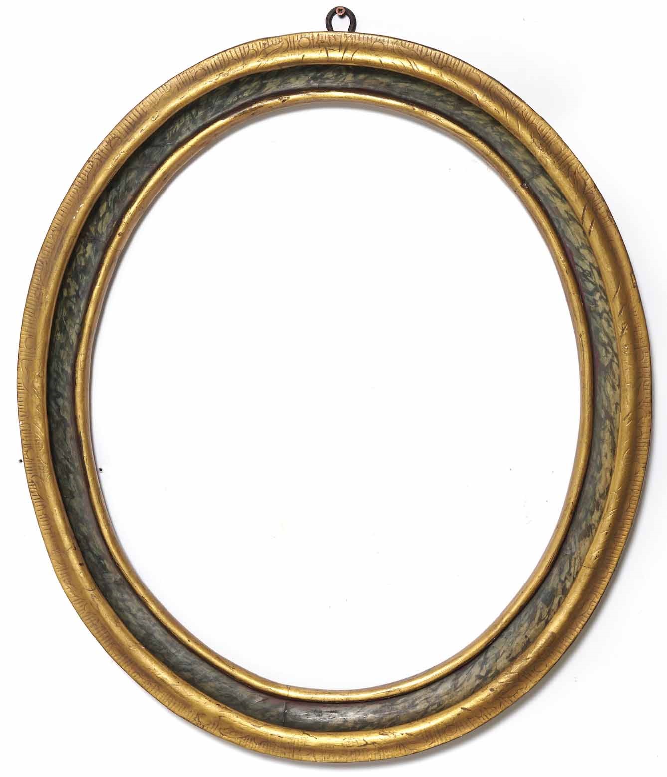 Cornice in legno laccato finto marmo e dorato. Marche XVIII secolo