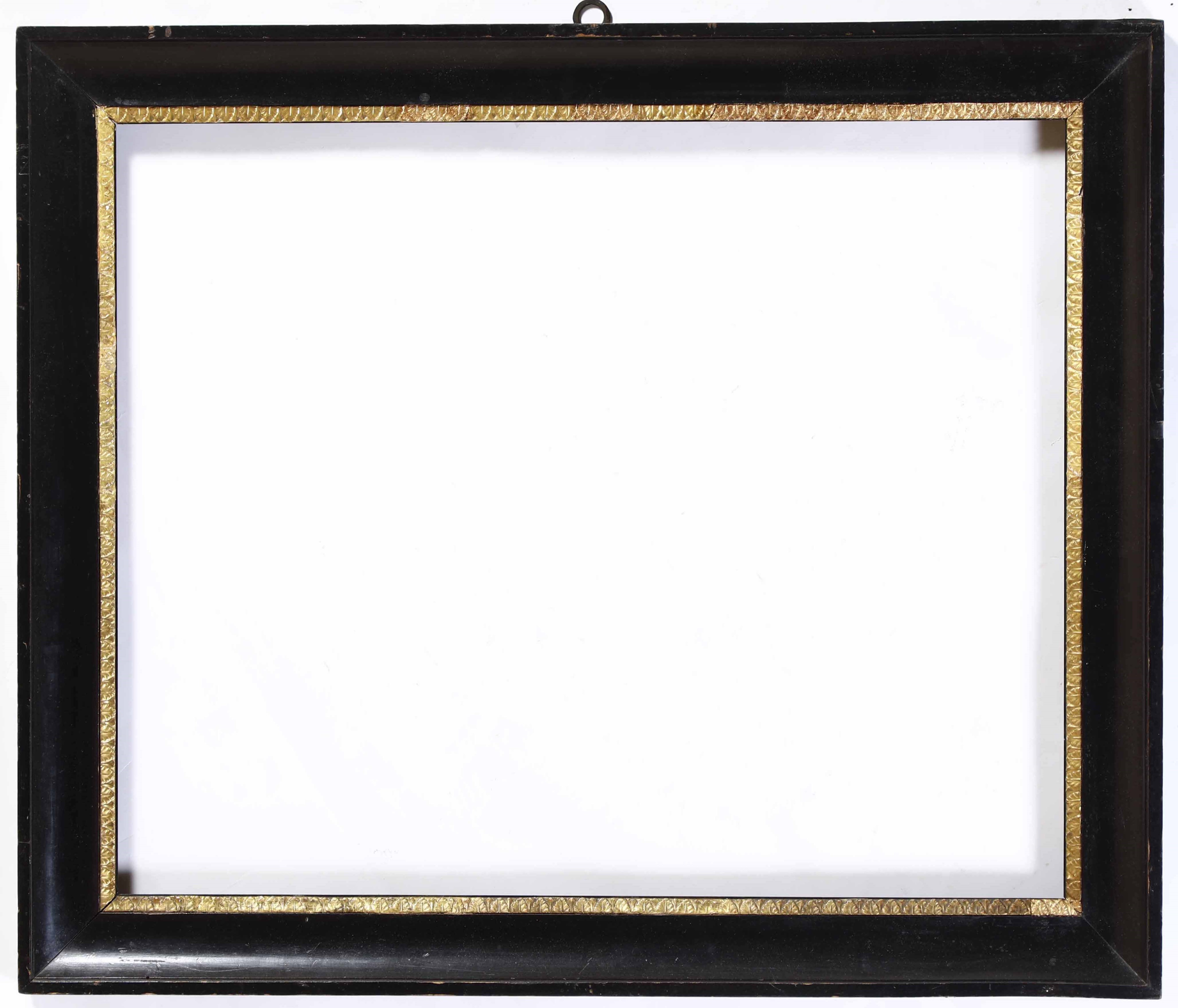 Cornice neoclassica in legno ebanizzato con decoro a fogliette in pastiglia dorata, [..]