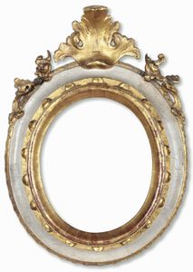Cornice ovale in legno laccato e dorato. Emilia XVIII secolo