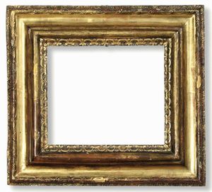Cornice in legno intagliato e dorato. Italia XVII-XVIII aecolo