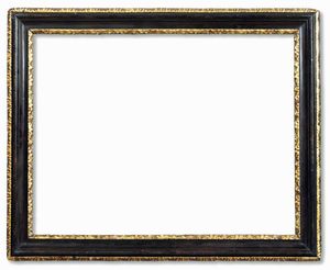 Cornice in legno ebanizzato con profili dorati. Alto Veneto XVIII secolo