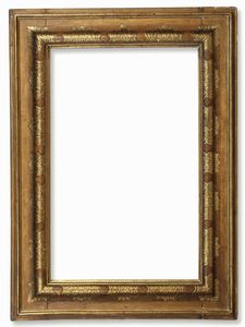 Cornice in legno modanato, intagliato a più ordini e dorato. Italia centrale, XVII [..]