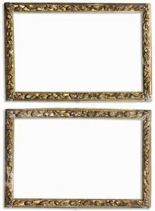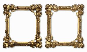Coppia di cornici in legno intagliato e dorato. Italia centrale XVIII secolo