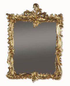 Cornice a cartoccio in legno riccamente intagliato e dorato. Veneto XVII secolo