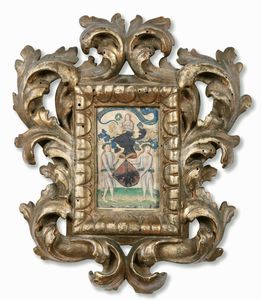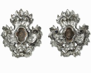 Coppia di cornici in legno intagliato e argentato, Italia centrale XVIII secolo