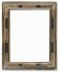Cornice a cassetta in legno ebanizzato, dorato e bulinato. Toscana XVII secolo