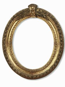 Cornice ovale riccamente intagliata e dorata con mascherone centrale, Francia XVII-XVIII [..]