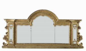 Specchiera da camino sagomata in legno intagliato e dorato. Italia centrale, XVIII [..]