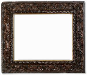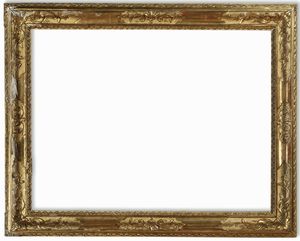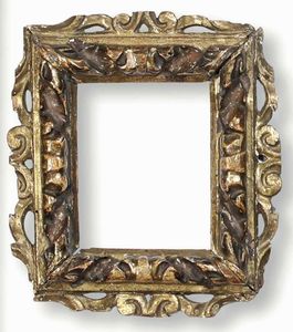 Piccola cornice intagliata, dorata e laccata. Roma inizio XVIII secolo