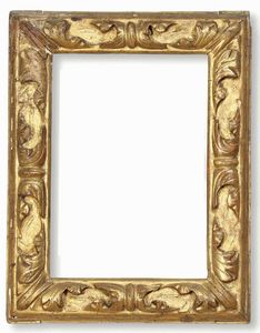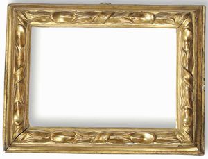 Piccola cornice in legno intagliato e dorato. Emilia XVIII secolo