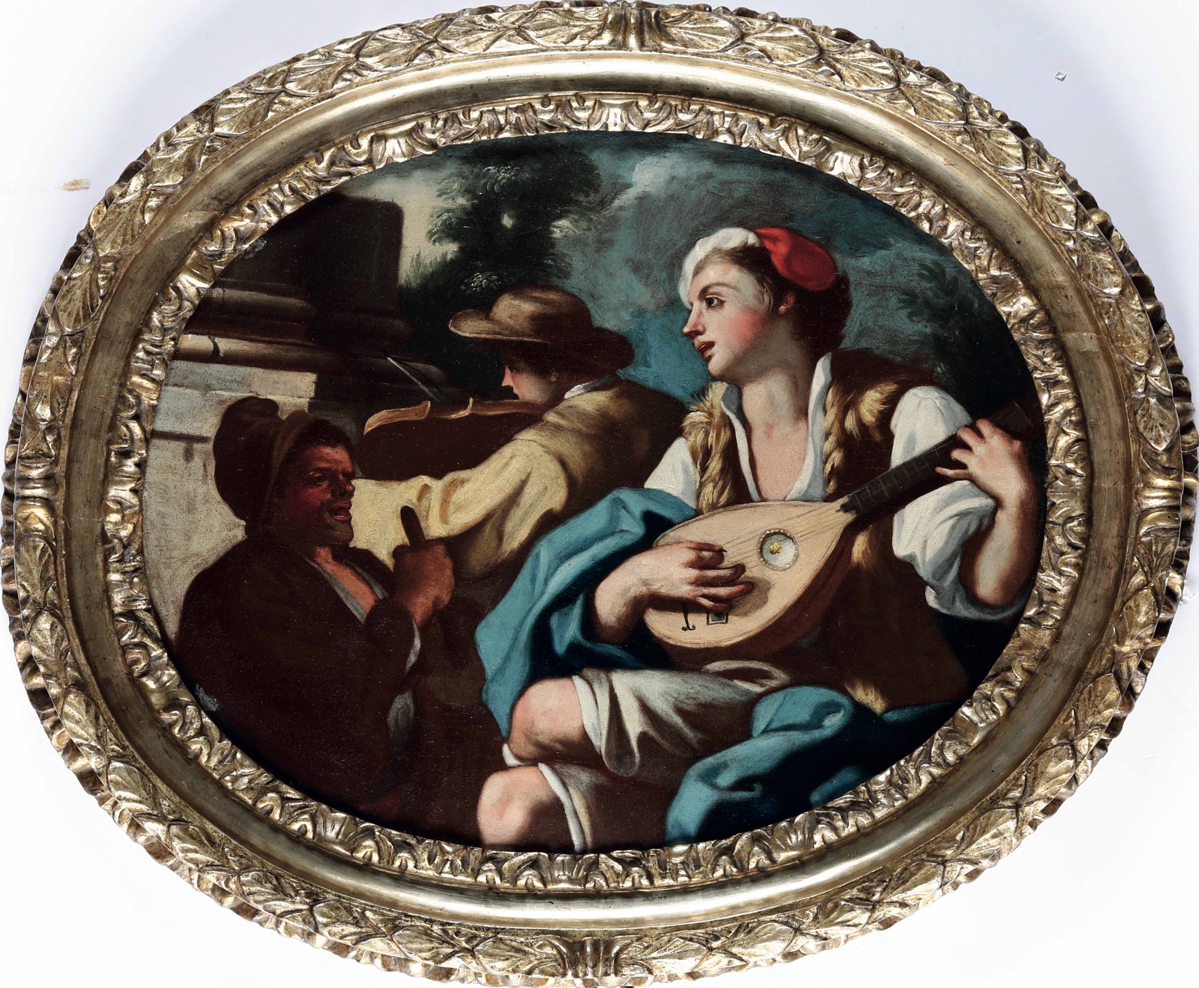 olio su tela ovale applicata su catone, Largh. 41 - Alt. 34 Cm