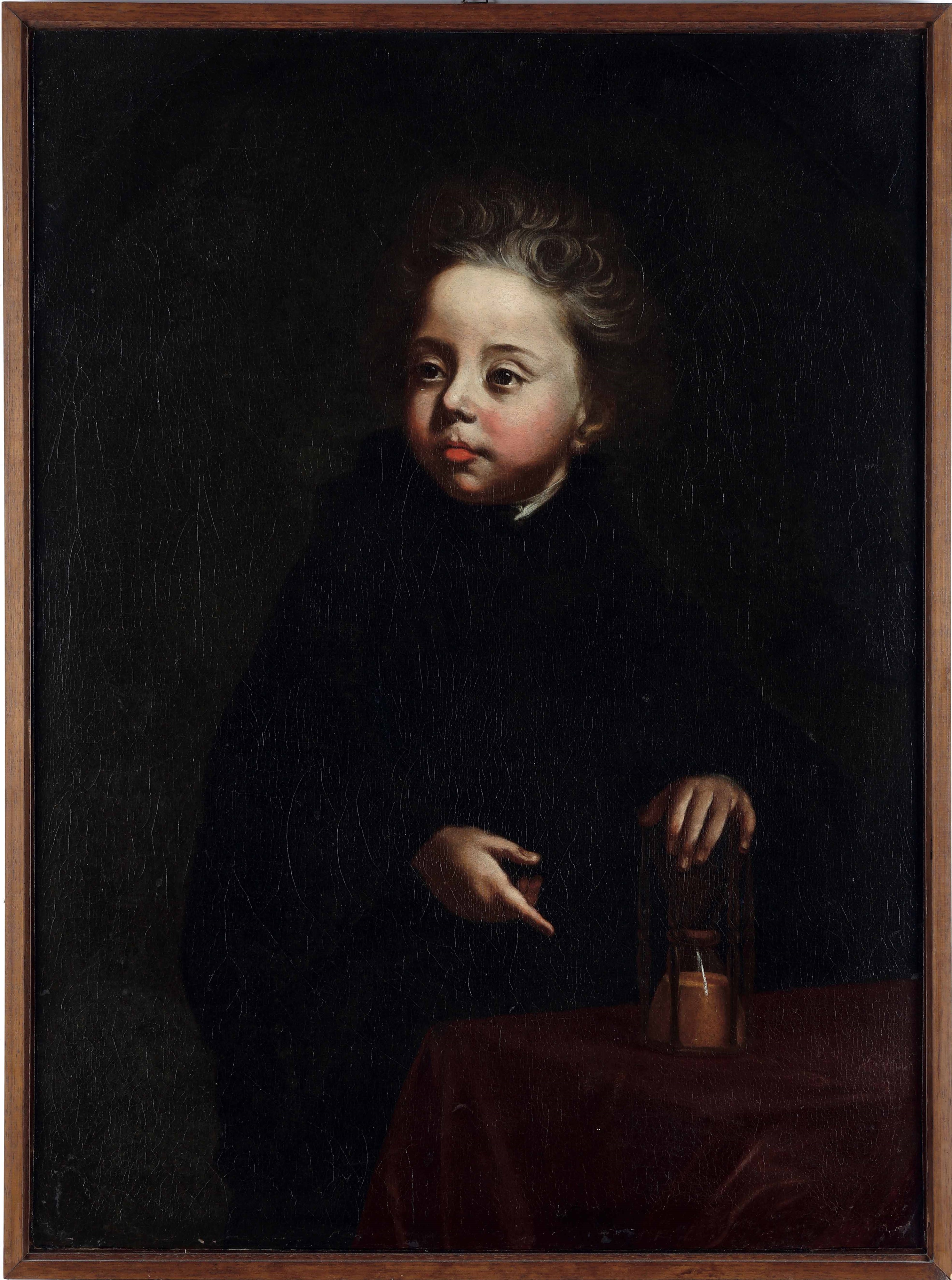 Scuola del nord Europa del XVIII secolo Ritratto di fanciullo con clessidra