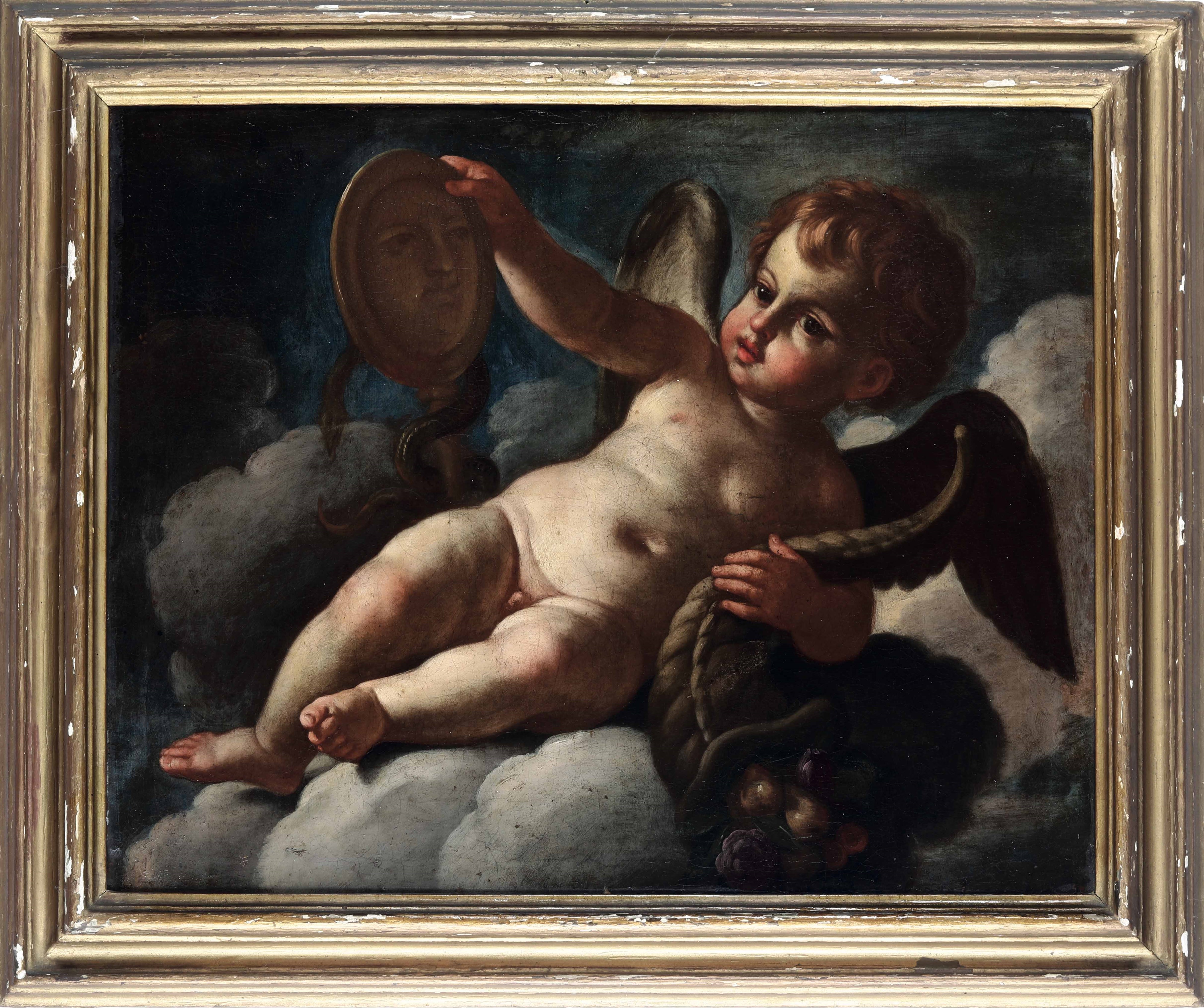 Scuola emiliana del XVII secolo Allegoria con putto con gli attributi della Prudenza [..]