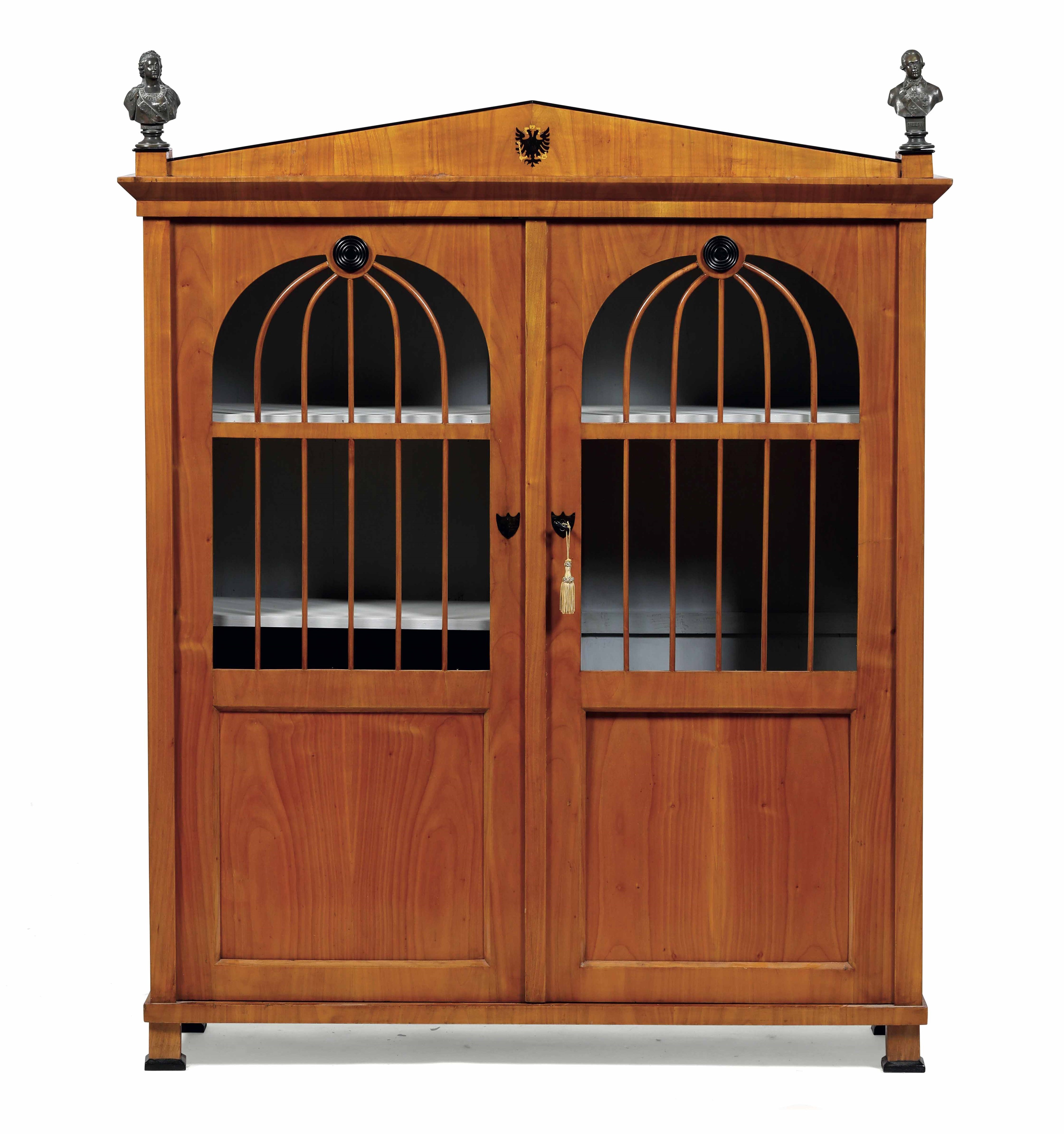 Armadio Biedermeier lastronato in ciliegio con applicazioni ed intarsi in legno [..]
