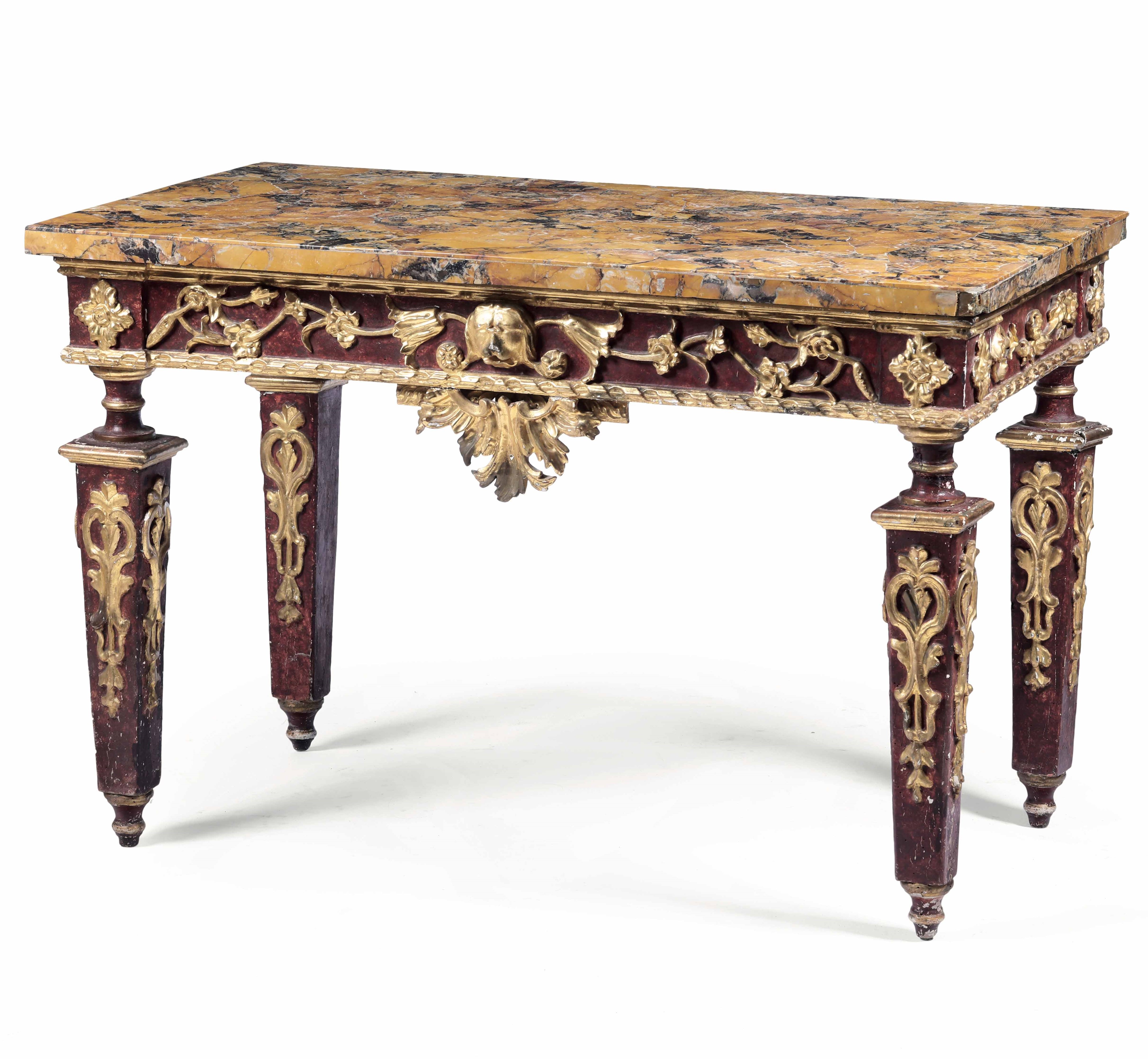 Consolle in legno intagliato, laccato con lumeggiature in oro. Toscana, XVII-XVIII [..]