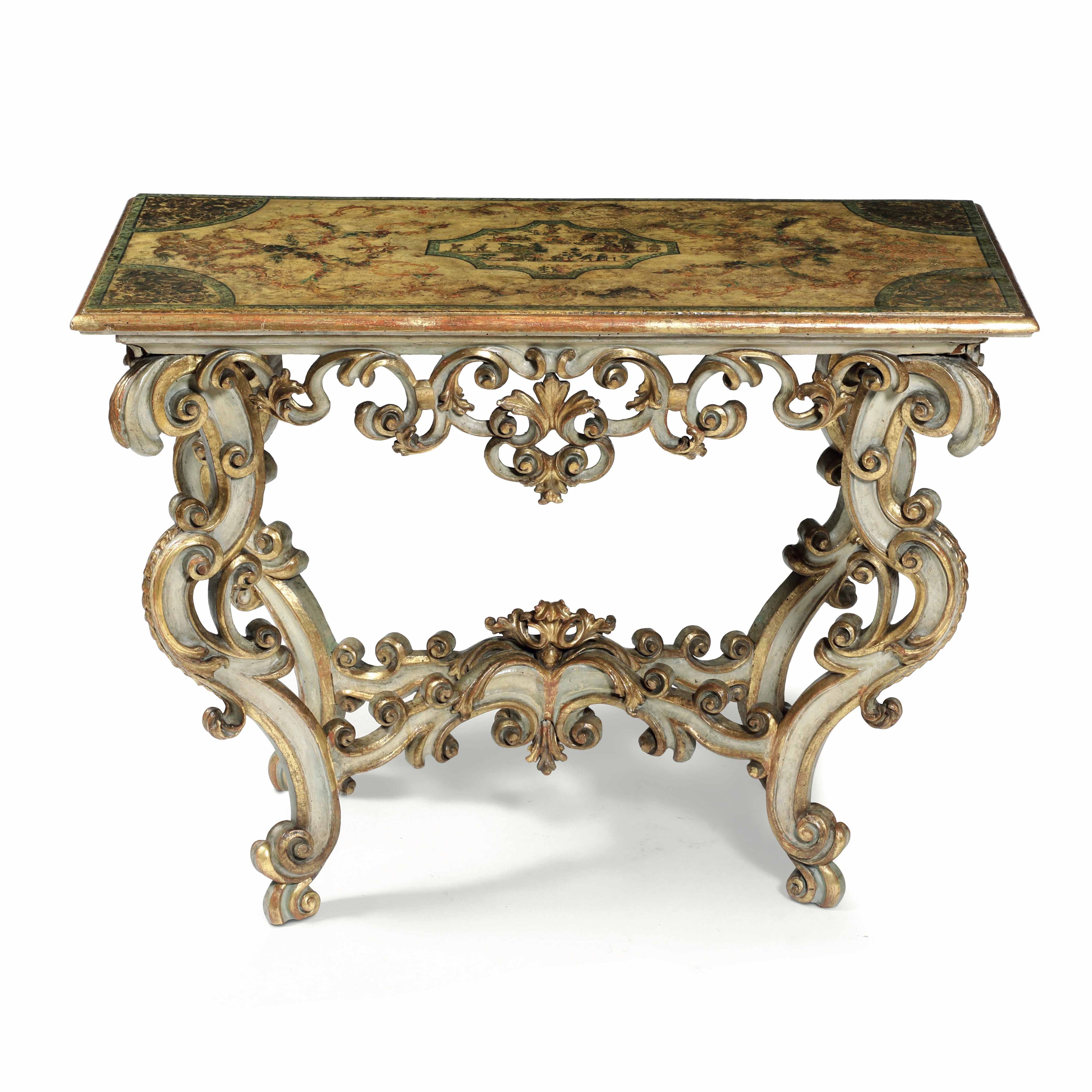 Consolle in legno intagliato, laccato e dorato. inizio XVIII secolo