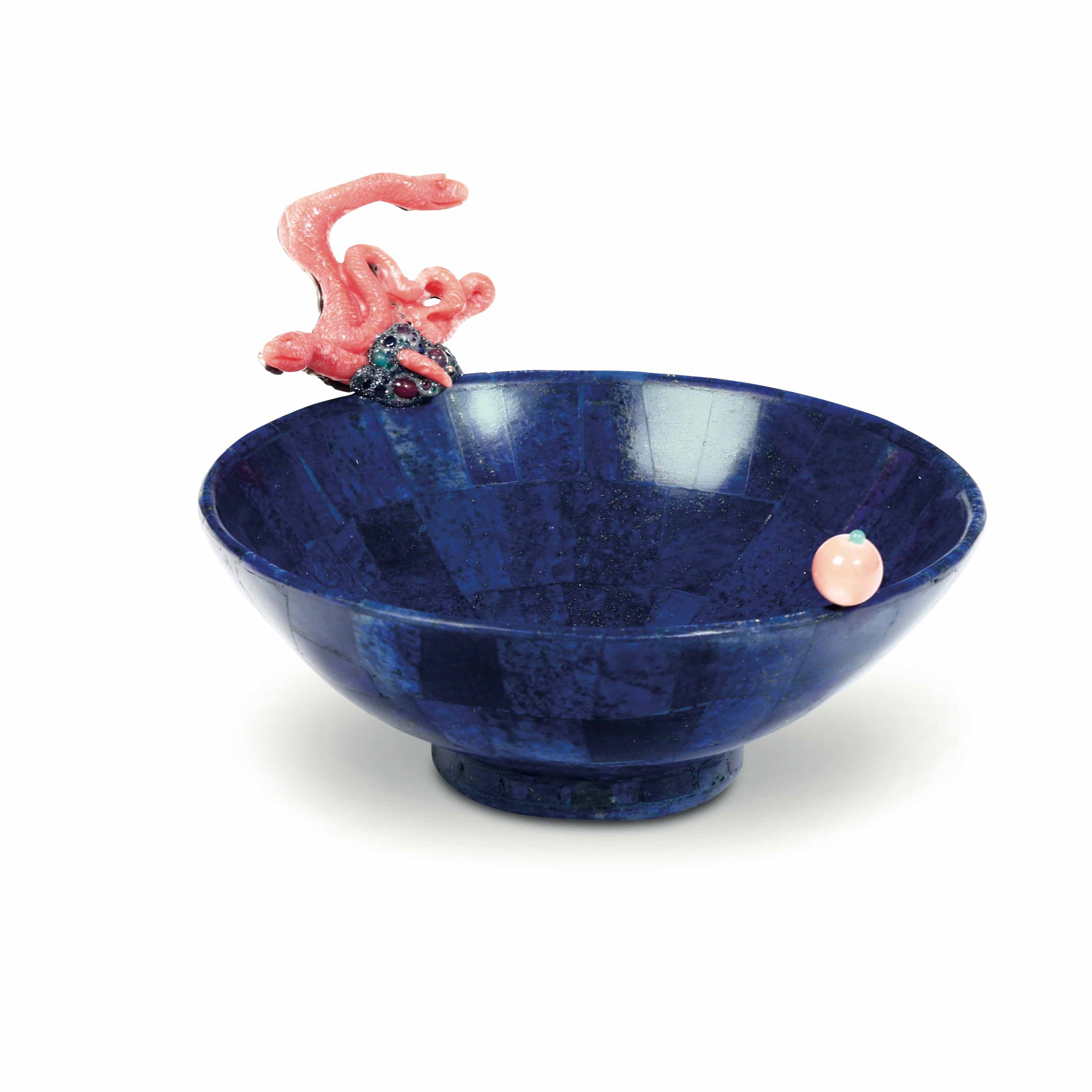 Coppa con serpe. Lapislazulo, corallo, zaffiri, rubini, diamanti e oro 9Kt. Lavorazione [..]