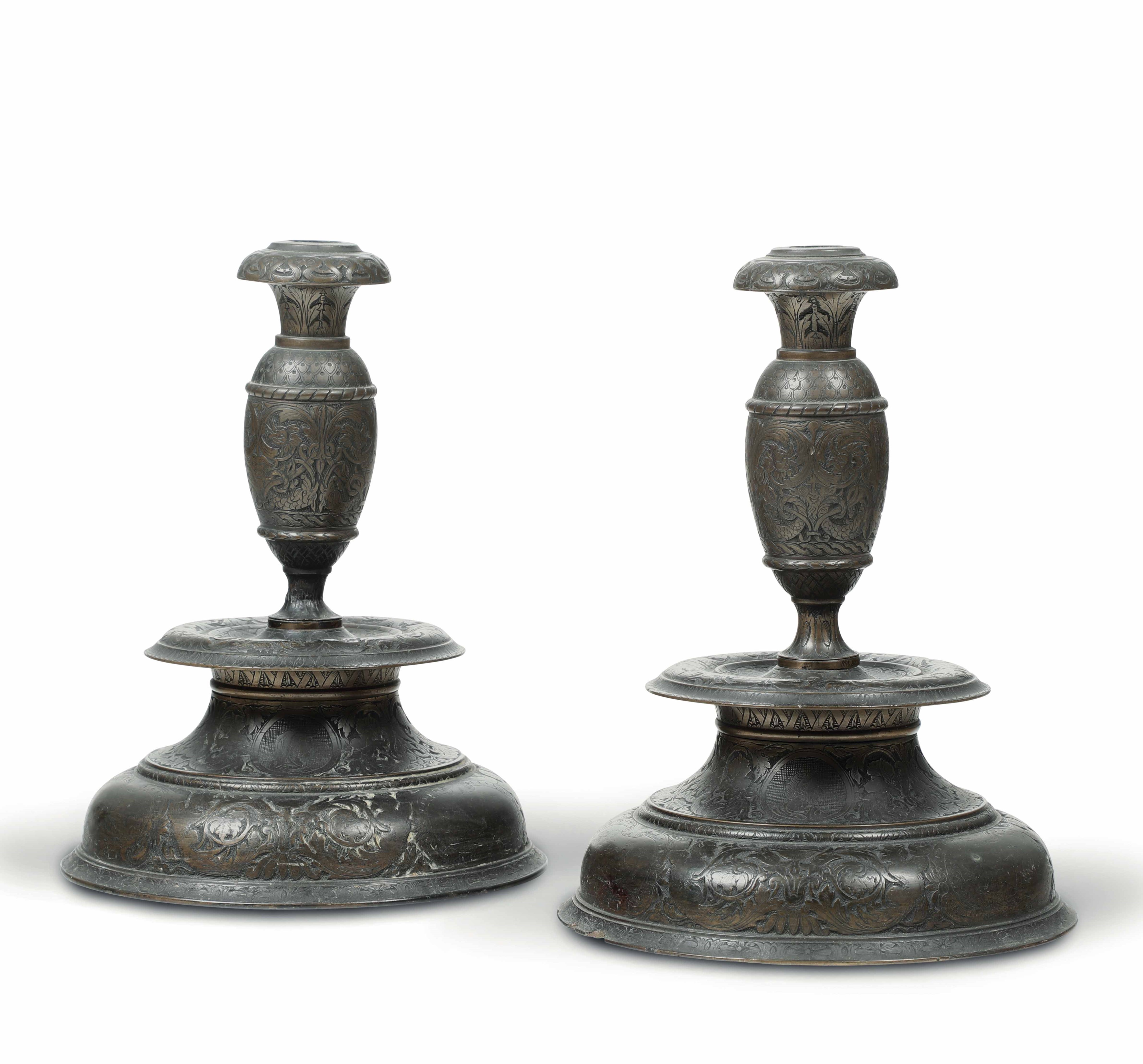 Coppia di candelieri in bronzo fuso, tornito e cesellato. Fonditore veneto del XVI-XVII [..]
