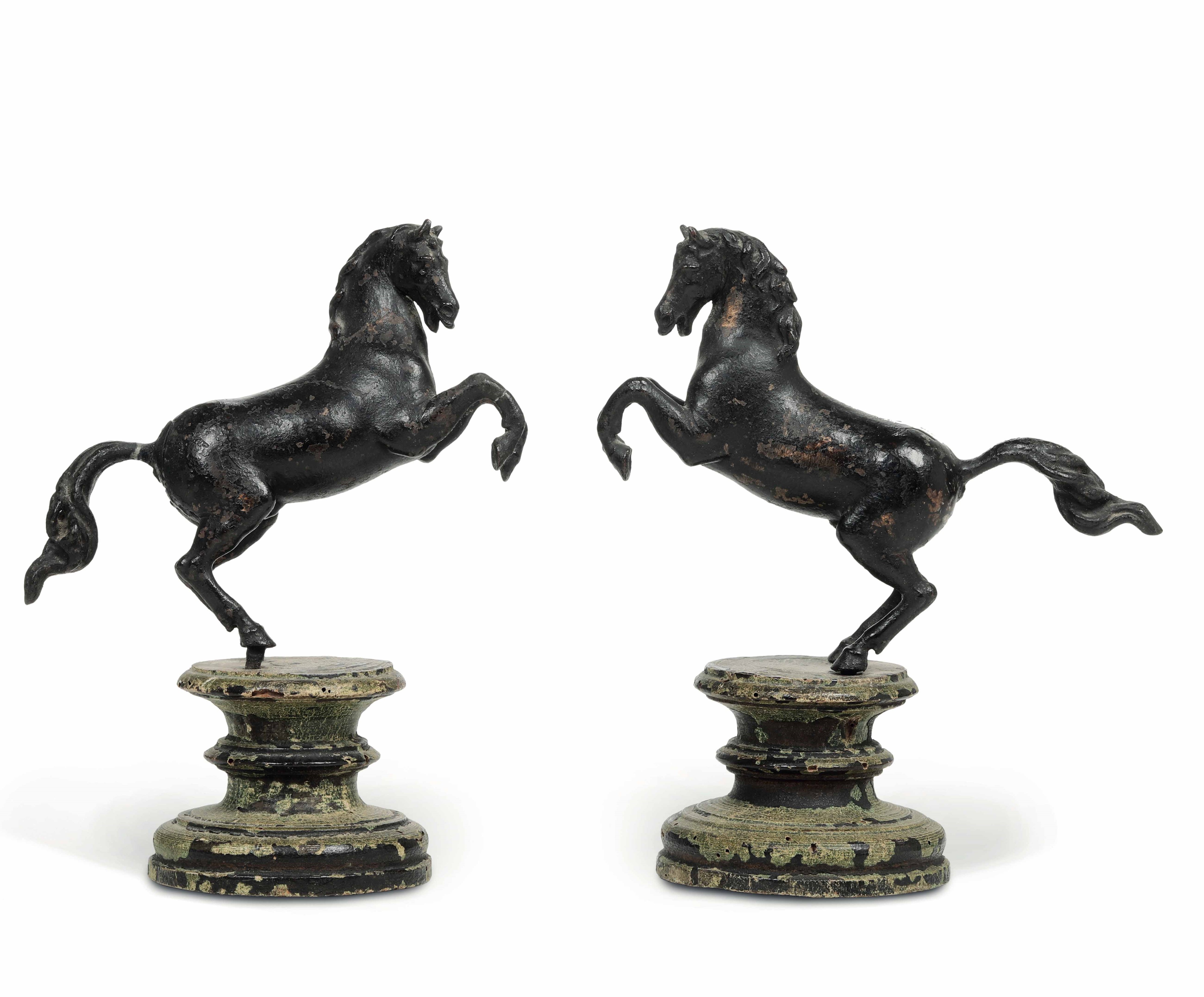 Coppia di cavalli rampanti in bronzo fuso e cesellato. Fonditore italiano del XVII-XVIII [..]