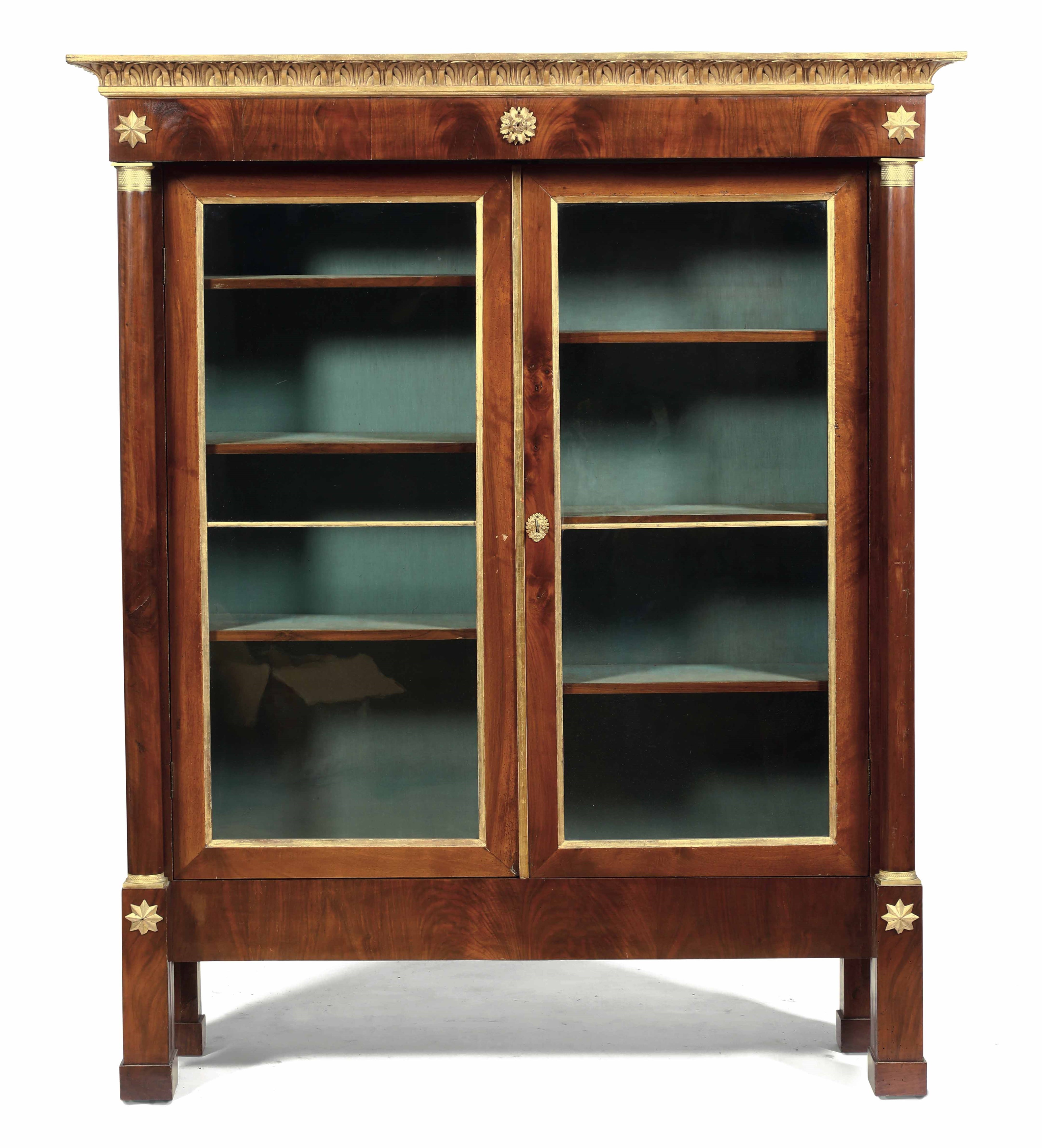 Credenza lastronata in mogano a due ante in vetro. XIX secolo
