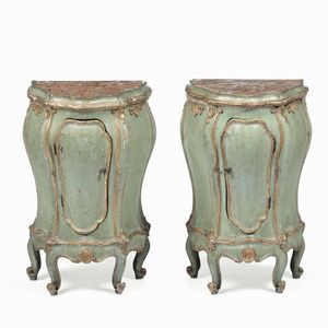 Coppia di comodini Luigi XV bombati in legno laccato. Venezia XVIII secolo