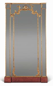 Coppia di importanti consolles in legno intagliato e dorato. Roma, XVIII secolo