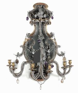 Coppia di grandi lumiere da parete a quattro luci in cristallo di Rocca, quarzo [..]