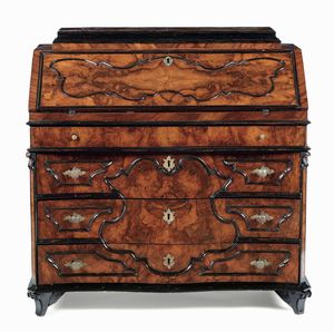 Scrittoio in noce e radica di noce con alzata. XVIII secolo