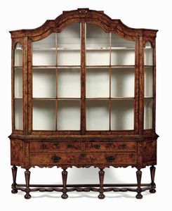 Grande vetrina impiallacciata in radica di noce. Olanda, XVIII secolo