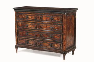 Cassettone in noce e radica di noce. Roma, inizi XVIII secolo