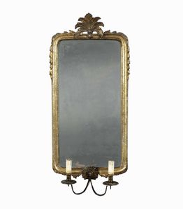 Consolle con specchiera in legno intagliato e dorato. Fine XVIII secolo