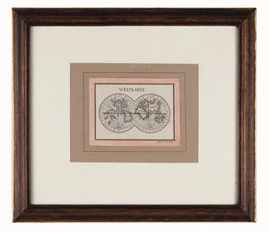 Weltkarte, mappa del mondo, disegno a inchiostro firmato Jacob Cornello (?) XX s [..]