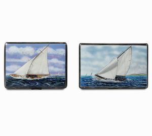 Coppia di portasigarette in argento e smalti decorate in policromia con motivo marinaro [..]