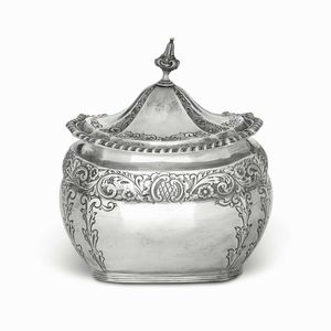 Scatola porta tè in argento fuso, sbalzato e cesellato. Inghilterra, bollo della [..]
