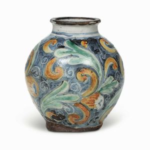 Raro vaso portapalme a forma di anfora con struttura a cerniere in bronzo e rame [..]